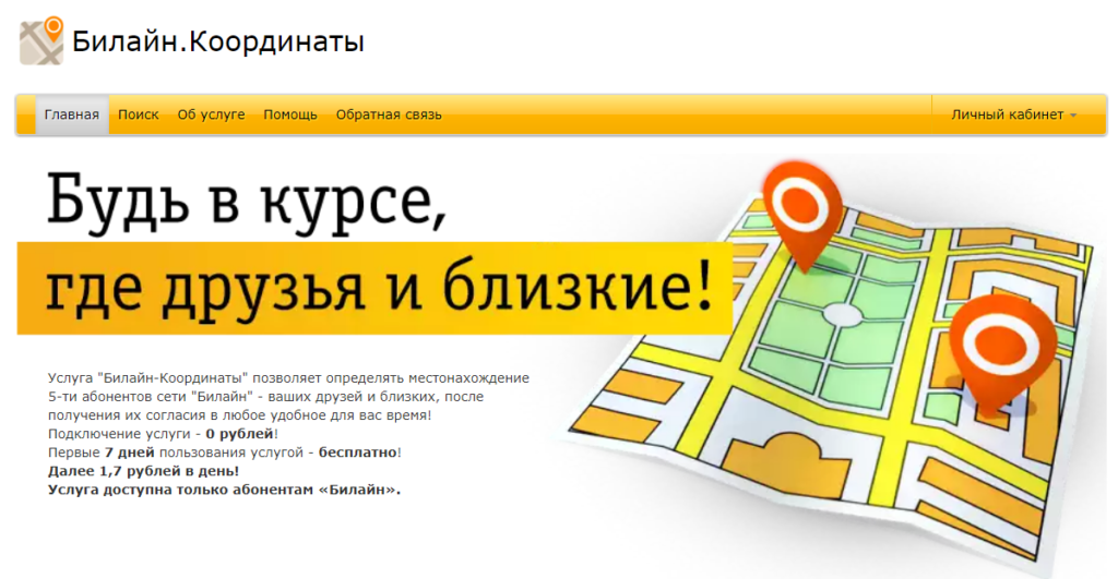 Сотовый оператор Билайн предоставляет абонентам уникальную возможность 24 часа в сутки узнать все о точном местонахождении близких и друзей без применения навигатора. Услуга «Локатор» Билайн