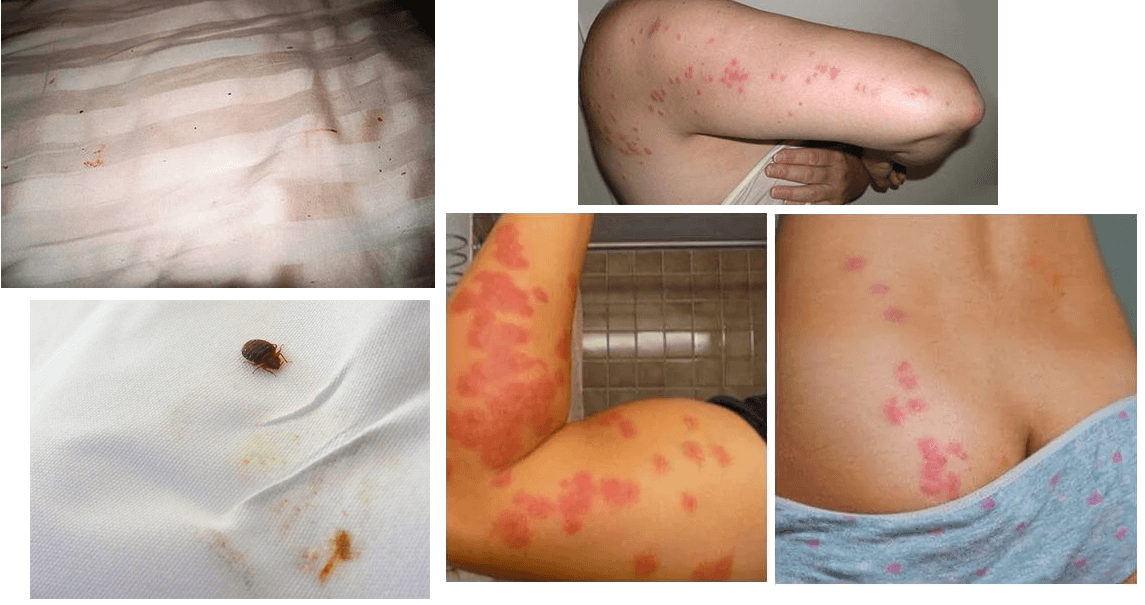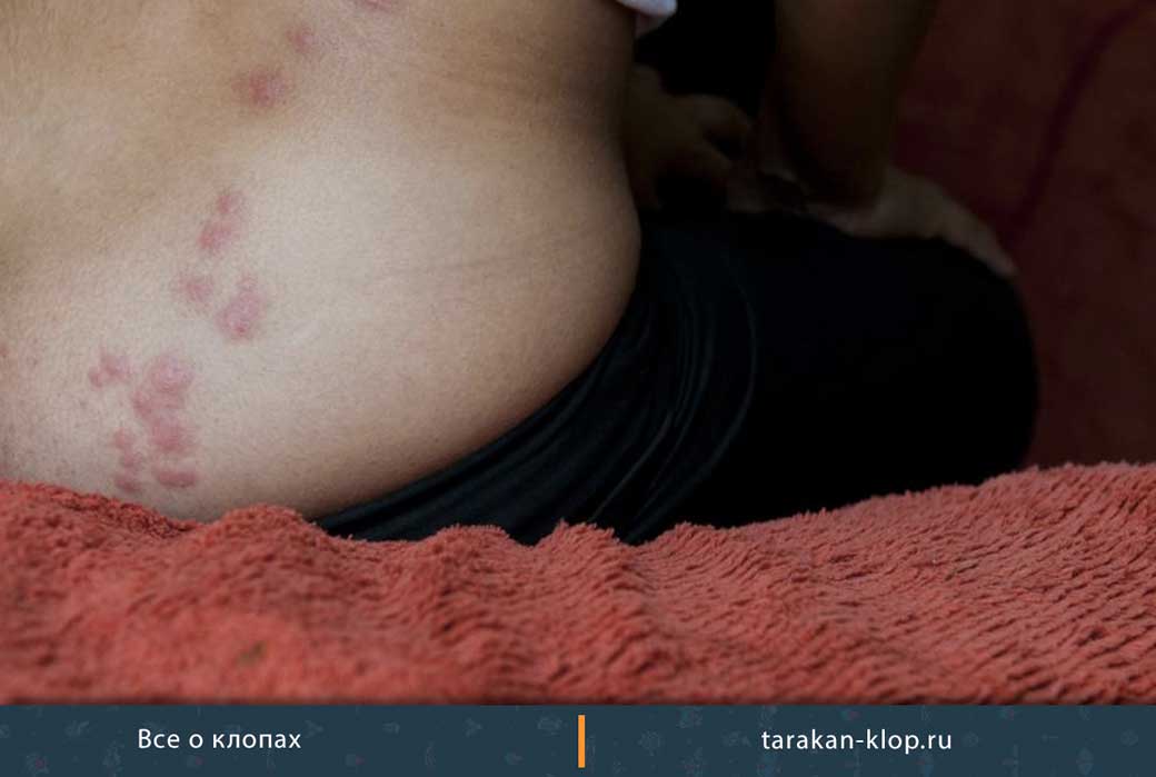 Укусы клопов. После нападения на теле человека остаются ранки с характерными чертами: