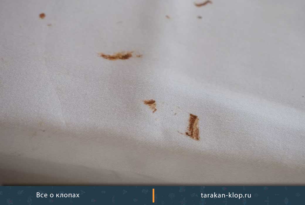 Следы крови. Наравне с ранками многие выявляют на кровате точечные следы крови. У клопов есть хоботок, которым паразиты прокалывают кожу, высасывают кровь.