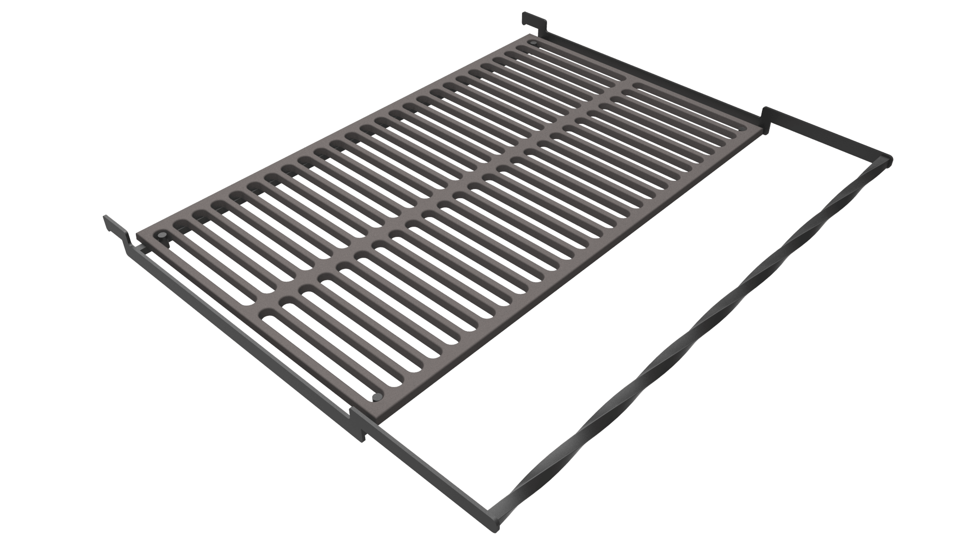 Изготавливается из нержавеющей стали, при этом толщины прутьев достаточно, чтобы выдерживать крупные продукты и не проседать во время термической обработки. Тепло распределяется по всему участку, за счет чего достигается равномерное пропекание.