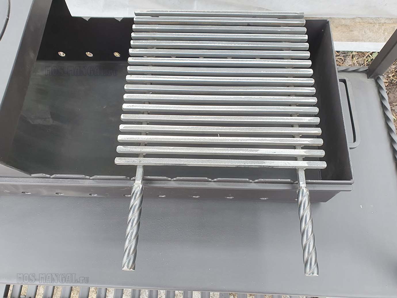 Данная решетка отлично войдет в специальные углубления, сделанные в мангале заранее.
