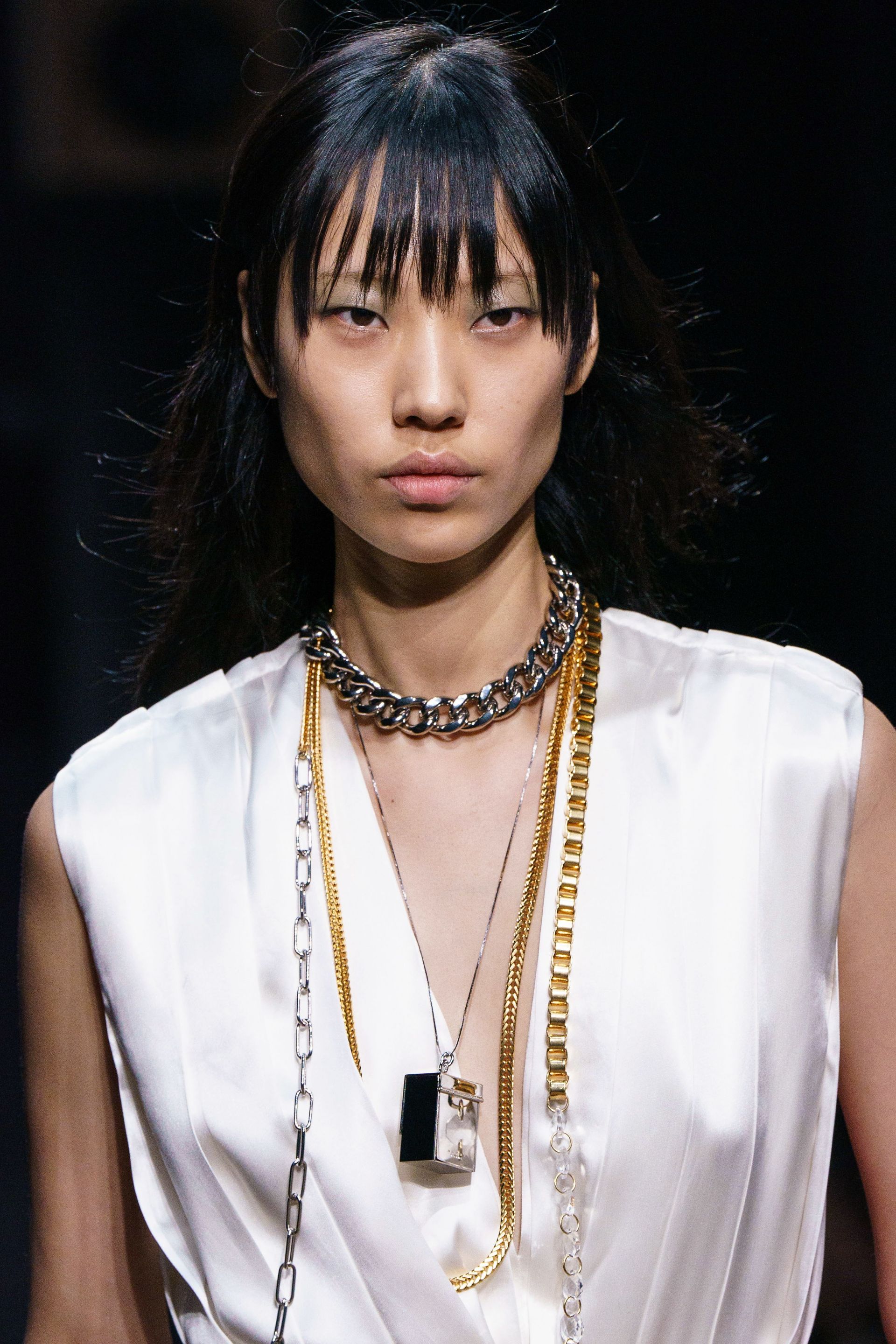 Только золото, и только женщинам с теплыми оттенками кожи. Или с соответствующим макияжем.