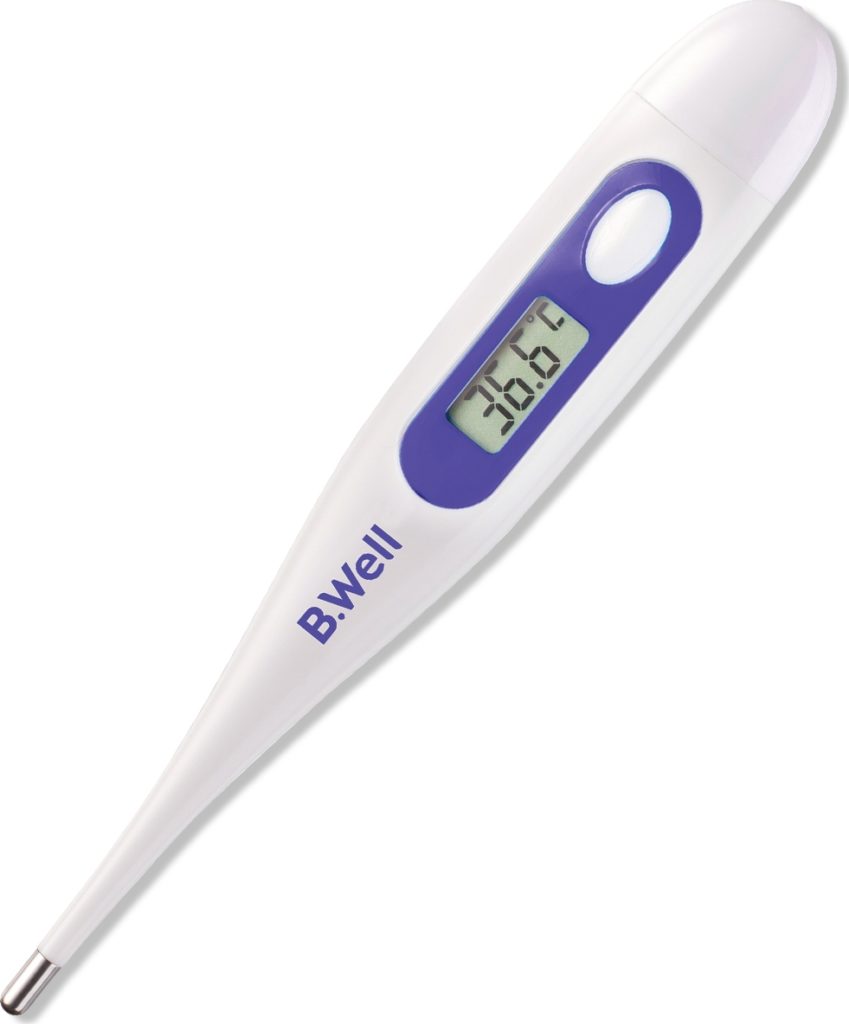 Модель от швейцарского производителя, занимает высокие позиции среди термометров на электроприводе. Аппарат пользуется славой надежной техники с широким функционалом, высокой точностью анализа, короткими сроками замера (от 60 сек. До 5 мин.), крепким корпусом, снабженным протекцией от влаги. Встроенный модуль памяти позволяет сохранять последние замеры, экран отображает информацию четко (даже люди с соответствующими проблемами не жалуются на дисплей). Аппарат относиться к наиболее продаваемым в категории электронных.