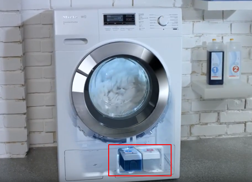 Π ΠΌΠ°ΡΠΈΠ½ΠΊΠ°Ρ Miele Ρ ΡΡΠ½ΠΊΡΠΈΠ΅ΠΉ TwinDos Π²ΡΠ΅ Π΅ΡΠ΅ ΠΏΡΠΎΡΠ΅. ΠΠΎΠΌΠΈΠΌΠΎ ΠΎΠ±ΡΡΠ½ΠΎΠ³ΠΎ ΠΊΠΎΠ½ΡΠ΅ΠΉΠ½Π΅ΡΠ° Π΄Π»Ρ ΠΏΠΎΡΠΎΡΠΊΠΎΠ², Π² Π‘ΠΠ ΠΏΡΠ΅Π΄ΡΡΠΌΠΎΡΡΠ΅Π½ Π²ΡΡΡΠΎΠ΅Π½Π½ΡΠΉ Π΄ΠΎΠ·Π°ΡΠΎΡ. Π Π½Π΅Π³ΠΎ Π²ΡΡΠ°Π²Π»ΡΡΡΡΡ Π΄Π²Π° ΡΠΏΠ΅ΡΠΈΠ°Π»ΡΠ½ΡΡ ΡΡΠ΅Π΄ΡΡΠ²Π° UltraPhase 1 ΠΈ UltraPhase 2, ΠΊΠΎΡΠΎΡΡΠ΅ ΠΏΠΎΡΡΡΠΏΠ°ΡΡ Π² Π±Π°ΡΠ°Π±Π°Π½ ΠΏΠΎΡΡΠ°ΠΏΠ½ΠΎ (ΠΏΠ΅ΡΠ²ΡΠΉ β Π΄Π»Ρ ΡΠ΄Π°Π»Π΅Π½ΠΈΡ ΠΆΠΈΡΠΎΠ²ΡΡ Π·Π°Π³ΡΡΠ·Π½Π΅Π½ΠΈΠΉ, Π²ΡΠΎΡΠΎΠΉ β Π΄Π»Ρ Π±ΠΎΠ»Π΅Π΅ ΡΠ»ΠΎΠΆΠ½ΡΡ ΠΏΡΡΠ΅Π½).