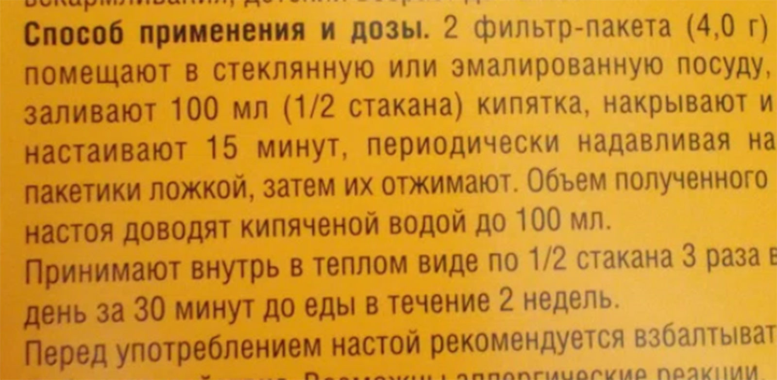 Данный состав предназначен для приема внутрь. Заваривать средство следует непосредственно перед приемом.