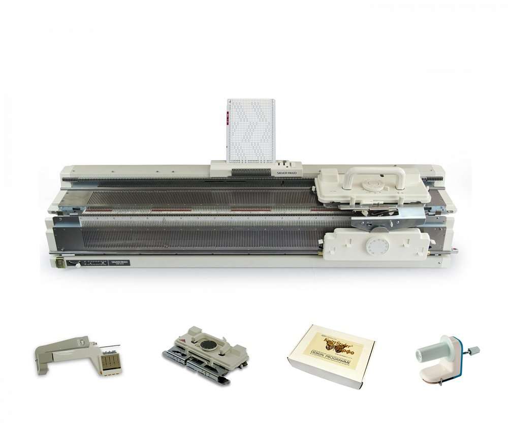 Тем, кто может позволить приобрести себе более дорогую технику, можно предложить полностью компьютеризированную Silver SK-840. У устройства, действительно, очень большой потенциал. Модель отлично подойдет как для бытового пользования, так и для того, чтобы открыть на ней свой небольшой бизнес. 5-ый класс машины гарантирует, что она справится как с очень тонкой, так и не очень толстой нитью. При этом можно легко выбрать вязать на одной или двух фонтурах. Очень хочется порекомендовать её начинающим дизайнерам, которые будут создавать свои шедевры на таком устройстве. Этому будут способствовать различные виды переплетений — от кулинарной глади и резинки до двухстороннего жаккарда. Специальное ажурное вязание поможет создавать удивительно изысканные и практически невесомые вещи. Доступно здесь и создание махровых изделий. И это не единственные возможности устройства, которое можно приобрести примерно от 121000 рублей.