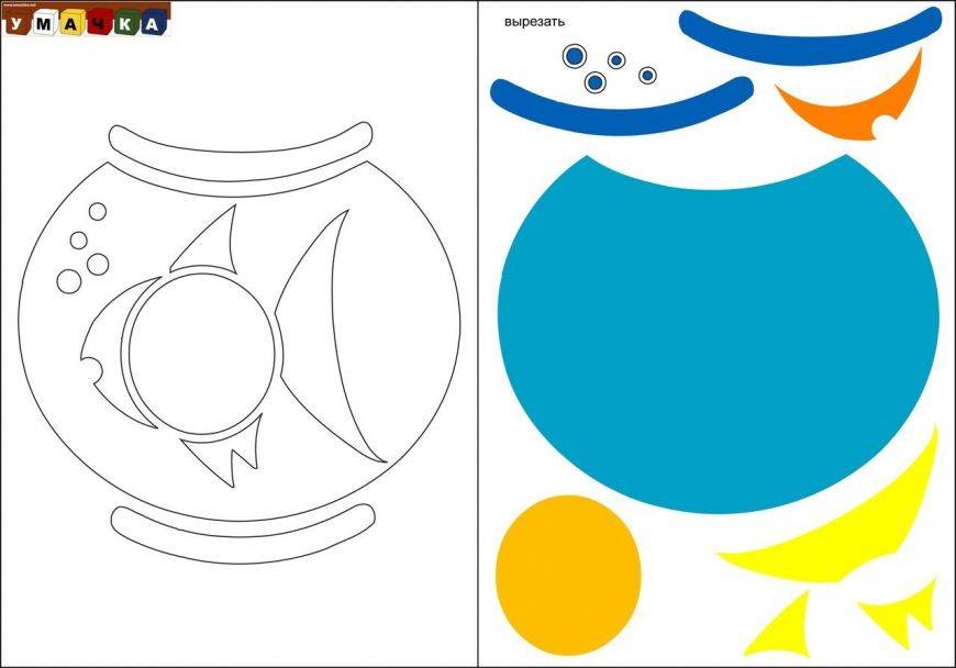 Все, что требуется от родителя – это распечатать на листочке бумаги шаблон. Малыш по образцу вырезает детали и наклеивает их на основу. Картинку можно дополнить надписью или раскрасить фон цветными карандашами или фломастерами.