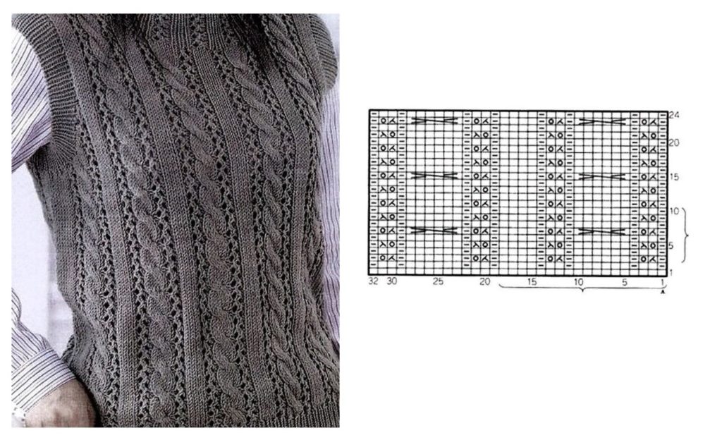 Схема узора вязаной спицами косы имеет определенные особенности: