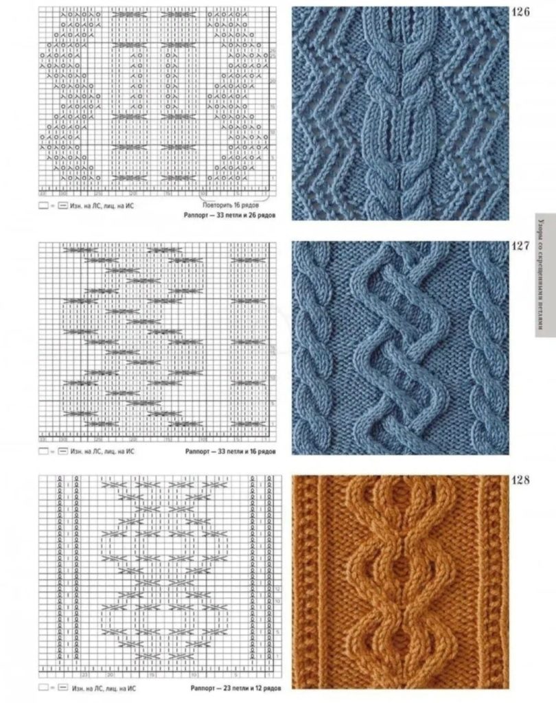 Внимательно изучите схему узора арана с объемными переплетениями
