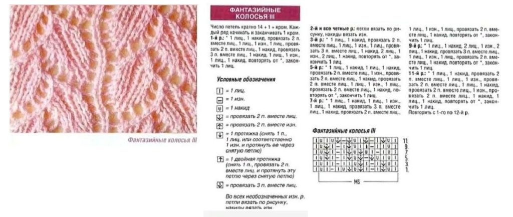 Раппорт узора: 14 петель; 12 рядов.