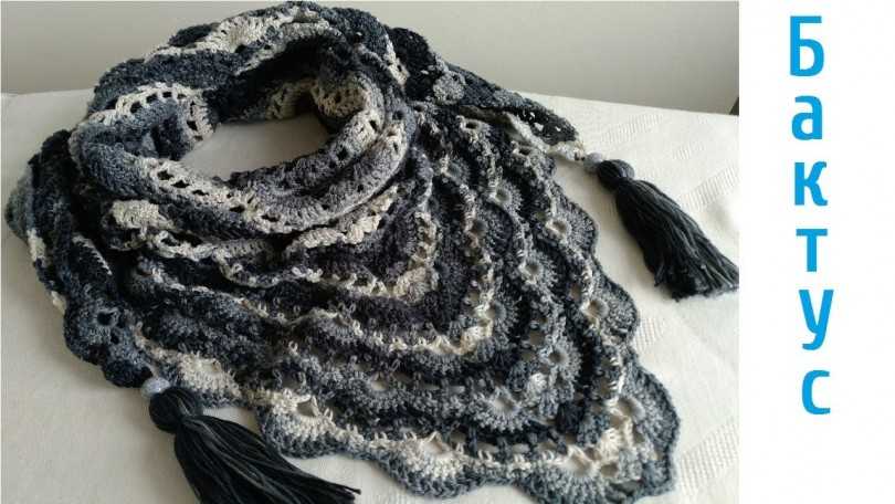 По сути бактус — это треугольный шарф, выполненный платочной вязкой. Но связать аксессуар можно не только на спицах, но и крючком.