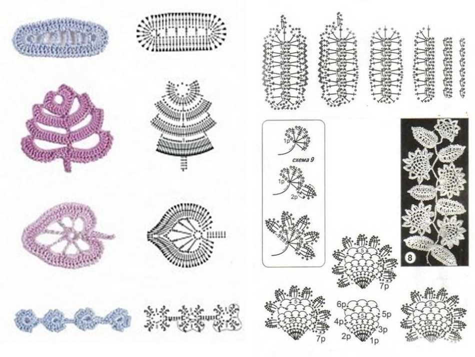схемы элементов ирландского кружева, связанных крючком, вариант 9