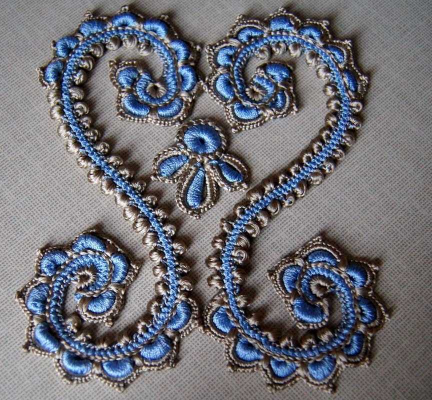 - «Верхняя» тесьма, ее звенья нужно будет соединять между собой и с мотивами.