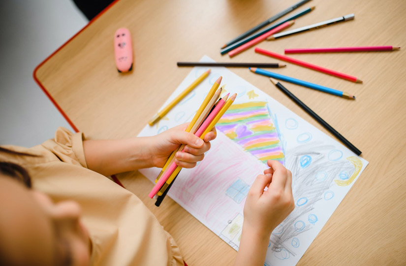 Лучше выбирать шестигранные цветные карандаши. Их легко держать в руке и проще сделать пальцевой захват. Для начала достаточно набора из 12 цветов — его хватит для того чтобы сделать простой рисунок и настоящий шедевр. Взрослый показывает, как использовать карандаши. Сочетать цвета, менять нажим и способ удержания в руке. Научиться рисовать можно через раскраски. С их помощью ребенок привыкнет не выходит за границы и делать мелкие детали.