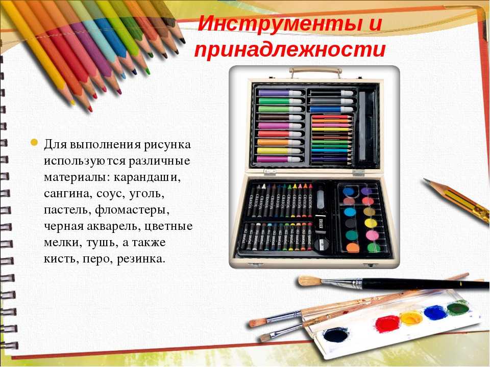 На уроках графического искусства пользуются карандашами. Помимо классических существуют акварельные, пастельные, угольные, меловые. Классический вариант предлагает уникальные качества, облегчающие применение: