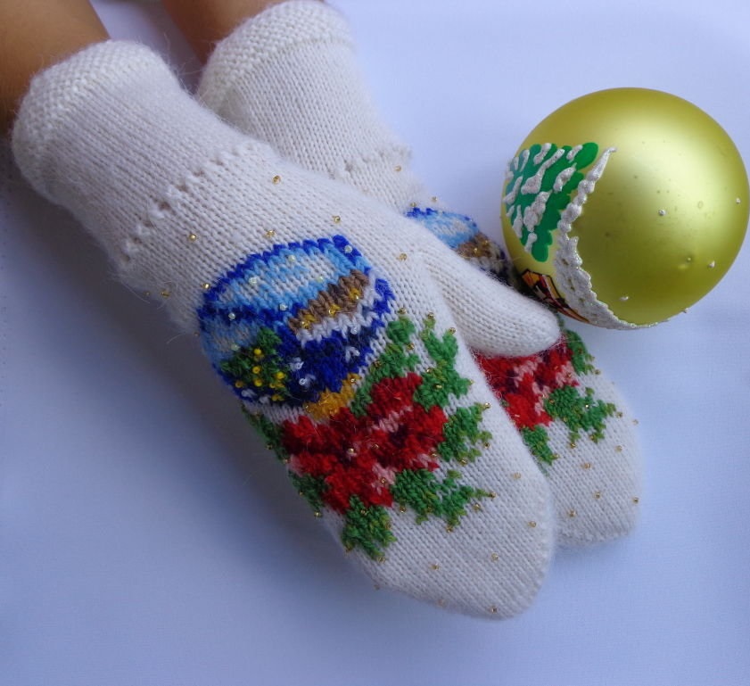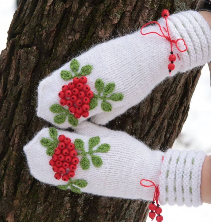 – процесс не сложный, главное разобраться с основными приемами вязания. И тогда уже можно начать экспериментировать. Проще всего связать варежки лицевой гладью и украсить их аппликацией или вышивкой на свой вкус. Очень красиво смотрится на варежках вышивка лентами или шерстяными нитками. Некоторые мастерицы идут дальше, они вяжут красивые аппликации крючком, украшают варежки бусинами, стразами и разноцветными узорами.