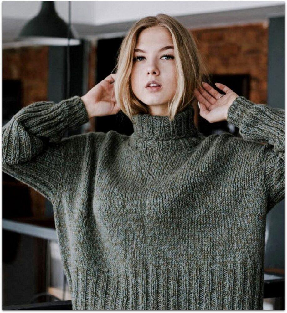 Еще один популярный вариант — свитера с воротником-хомутом или воротником-горлышком, которые придают образу непринужденный шик и теплоту. Эти модели идеально подходят для холодных зимних дней, когда хочется быть не только стильной, но и комфортной.