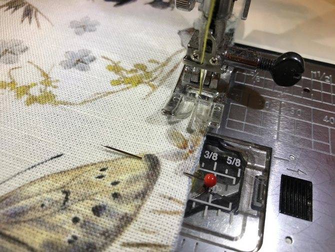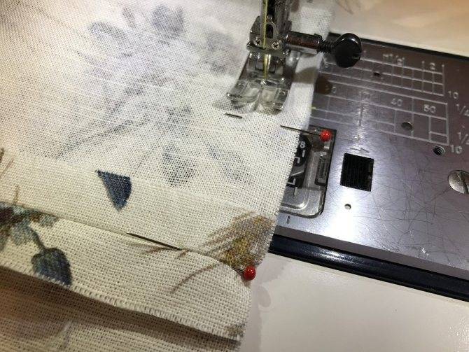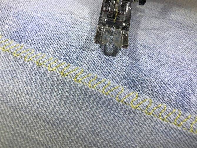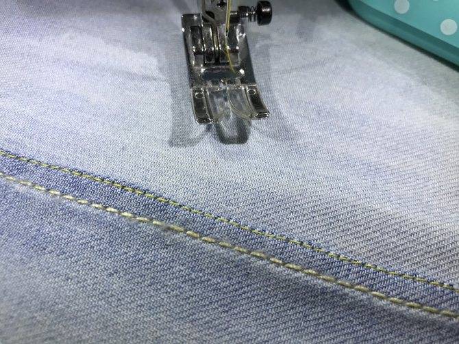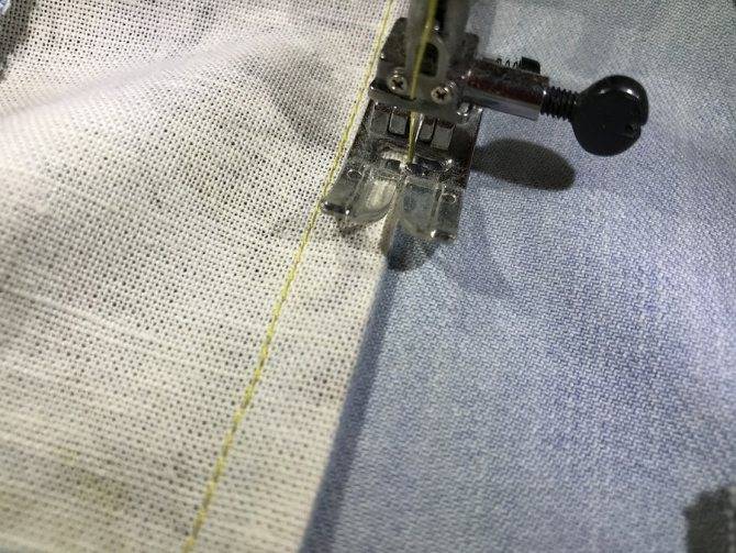 - Отстрочить по краю вход в сумку два раза, отступая на 2 мм и на 7 мм.