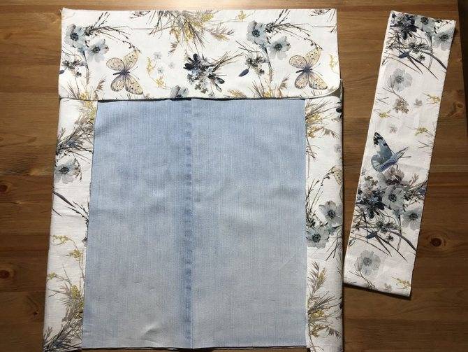 - Выкроить по два прямоугольника размером 40 см на 60 см из лицевой, подкладочной тканей и синтепона — это будут боковые стороны.
