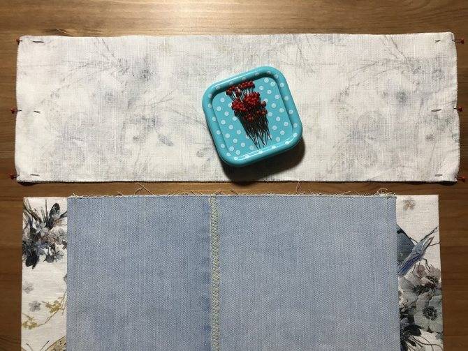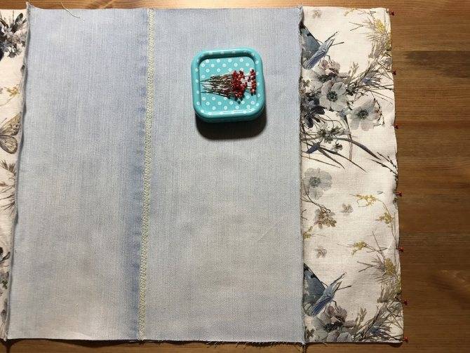 Берем джинсовый карман, пришиваем к нему подкладочную ткань.