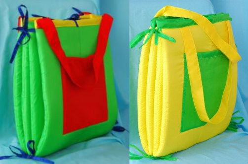 Шьется такая сумка просто и быстро, очень удобная и практичная, выполняет роль как сумки, так и пляжного ковра.