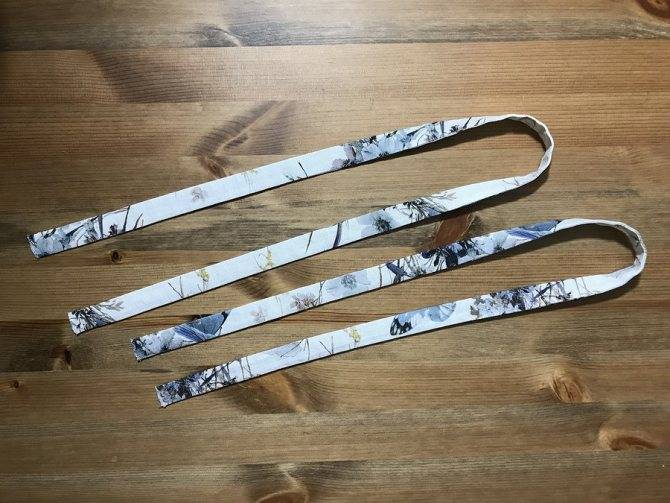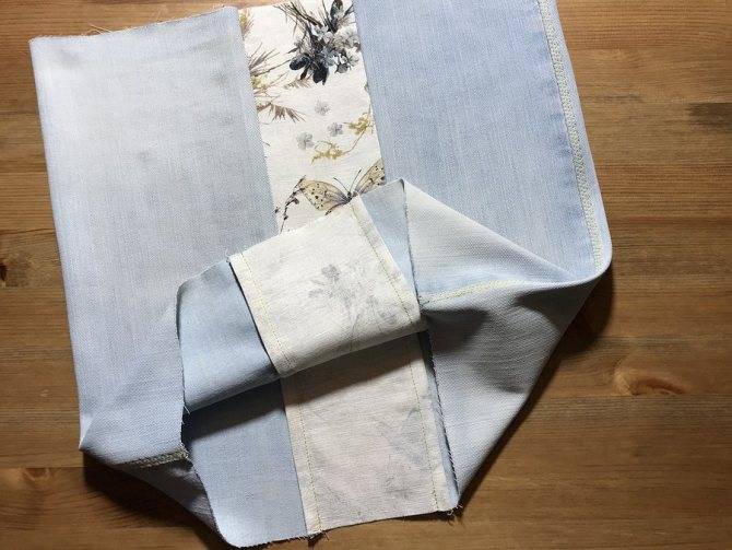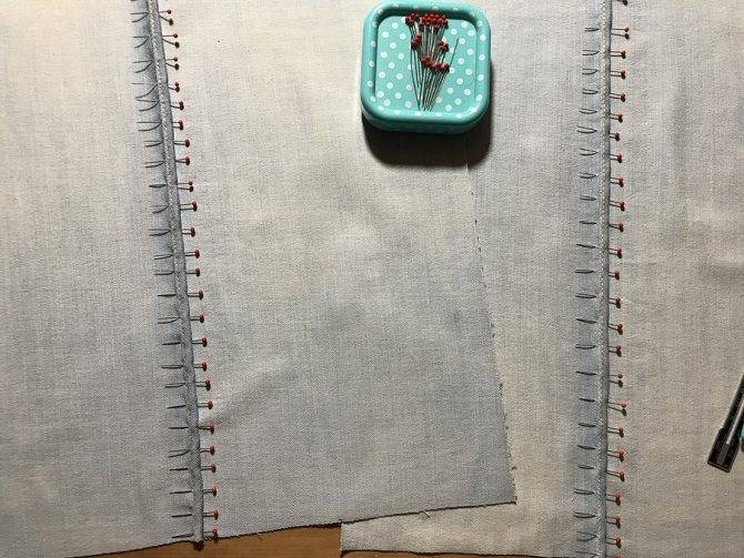 Припуски по длинным срезам отворачиваем наизнанку, проутюживаем. Складываем детали пополам, прострачиваем с 2 сторон.
