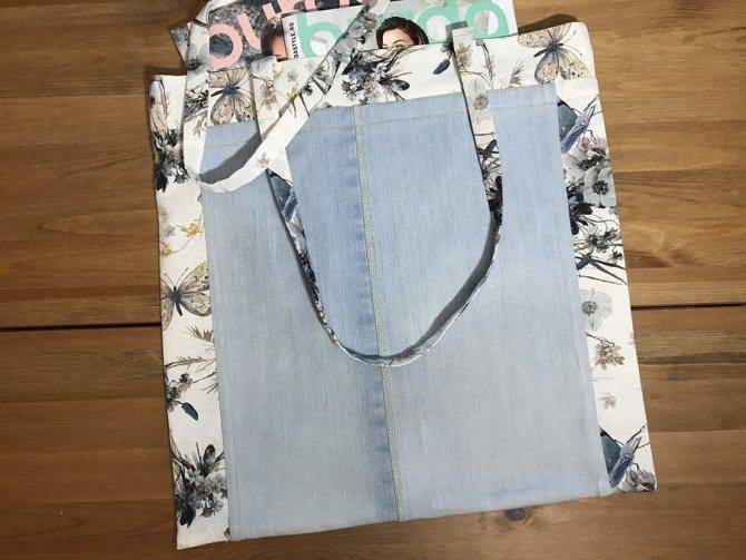 В итоге у вас получится пошить красивую хозяйственную сумку из прочной джинсовой материи, украшенную ремнями. Причем работа отнимает немного времени, а сумка из джинсов, при всей простоте, смотрится как эксклюзивный модный аксессуар.