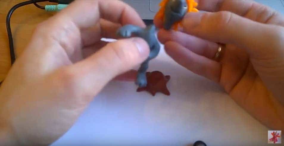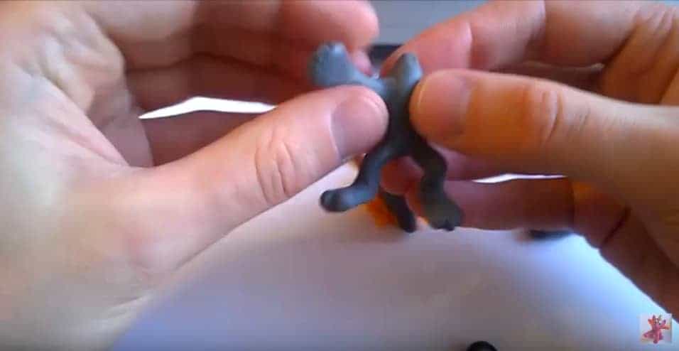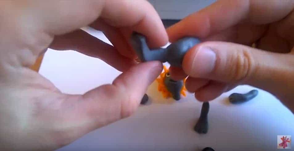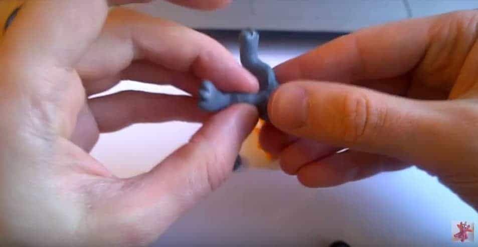 Отложим голову в сторону и подготовим заготовки для остальных частей тела мультяшного ежа. Для этого также будем использовать серый цвет. Не забываем сделать надрезы в виде пальцев на передних и задних лапах животного, а также придаем им соответствующую изогнутую форму.