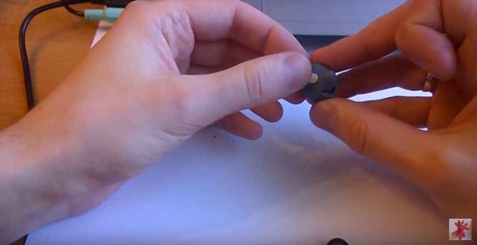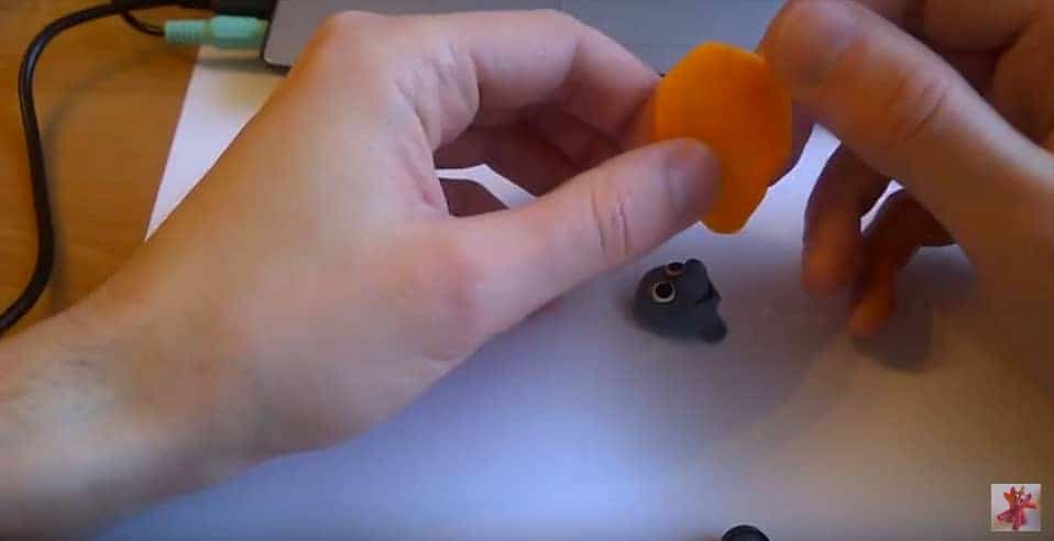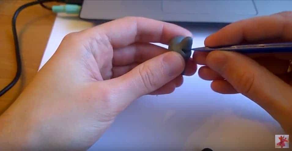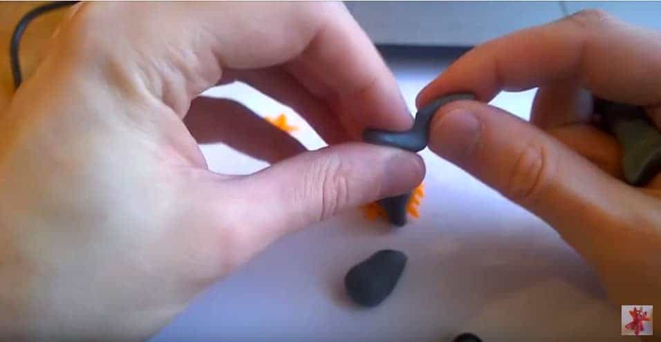 Из черного пластилина скатайте маленький шарик. Прилепите его на место носика.