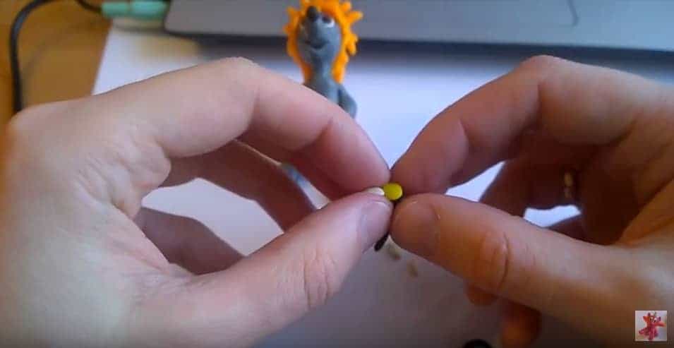 12) Для создания причёски в виде иголочек ёжика подготовьте оранжевую лепёшку.