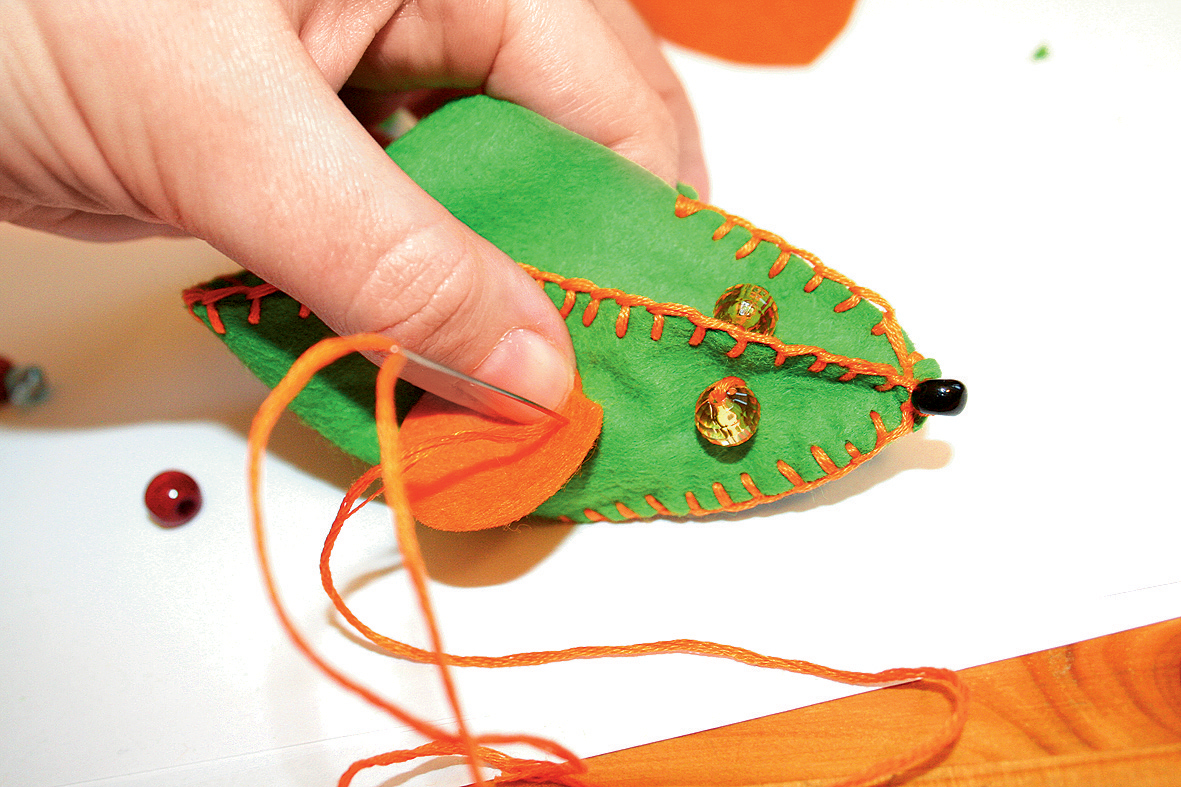 Будьте оригинальны — соедините детали не с изнаночной, а с лицевой стороны, используя петельный (обметочный) шов. Именно для этой цели и выбраны яркие нитки.