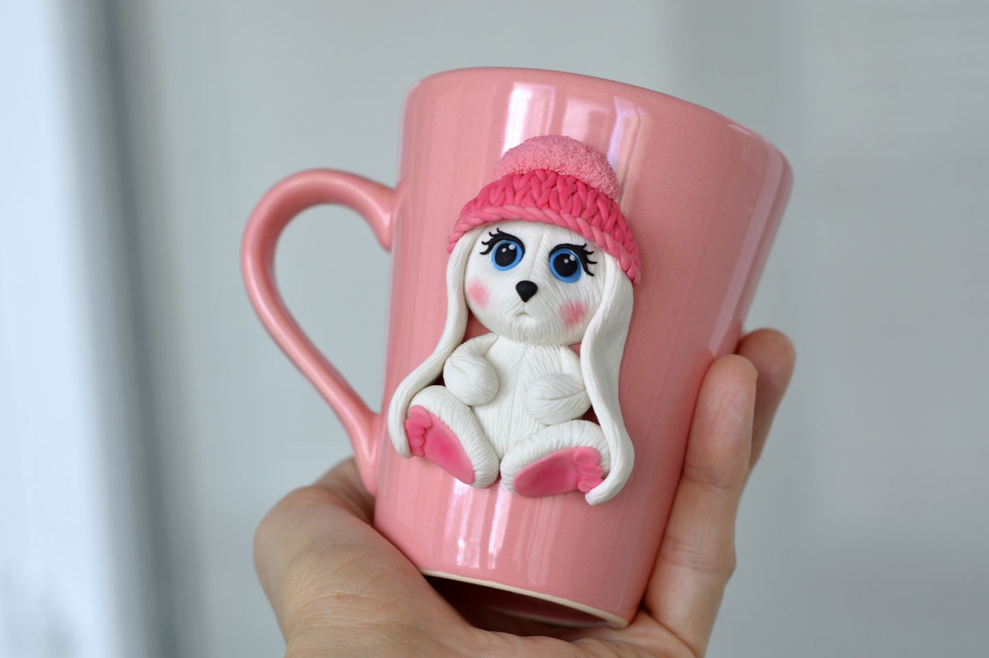 - Из серого полимера вылепить ушки и хвостик. Прикрепить их к туловищу.