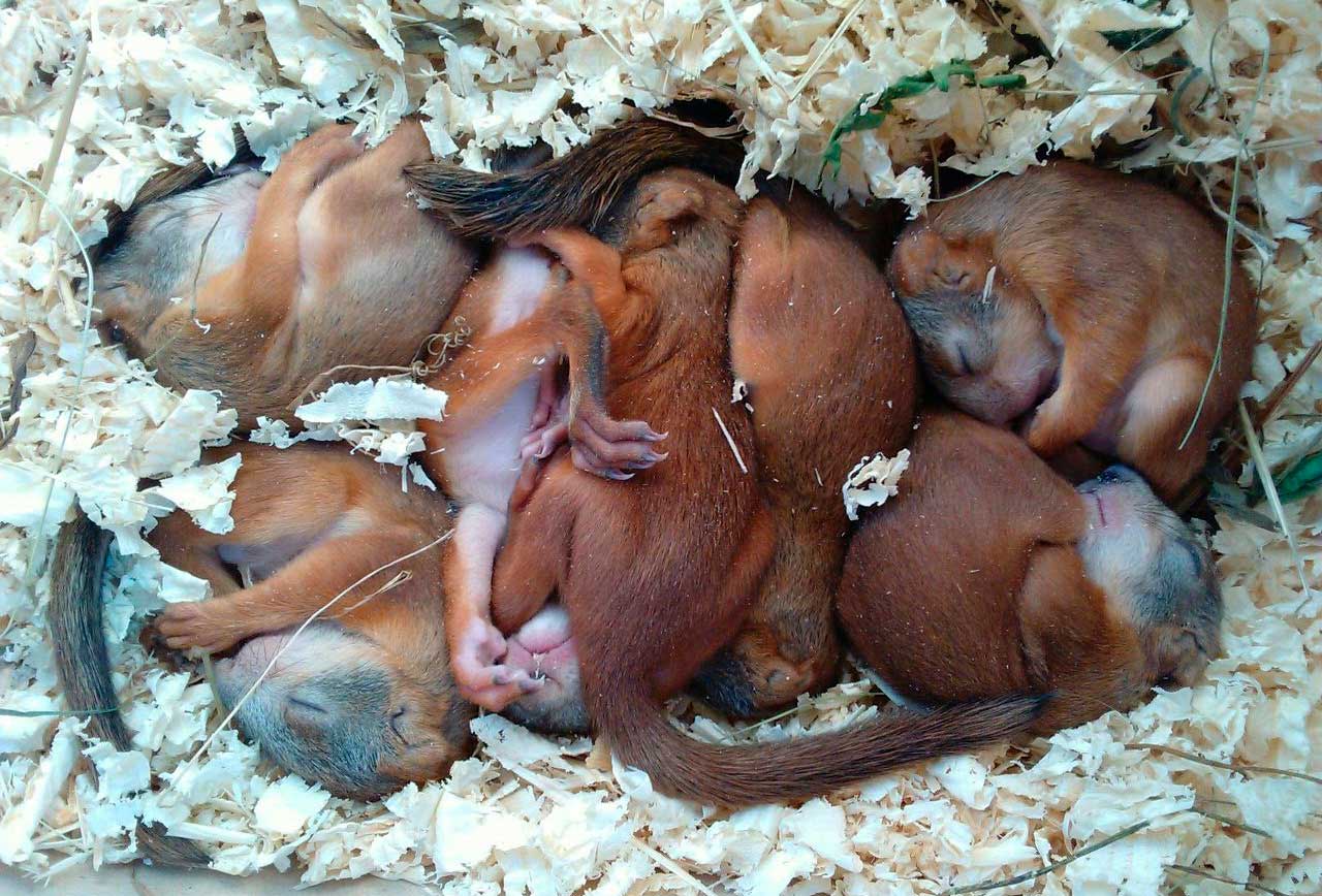 Беременность у белок обычно длится от 35 до 38 дней. А сколько у белки детенышей в помете? Обычно рождается от 3 до 10 малышей в первом помете. Во втором и третьем помете белка всегда рожает меньшее количество детей, чем в первом. Бельчата – так называются детеныши белки, рождаются без шерсти и абсолютно слепые. Вес их составляет около 8 г.