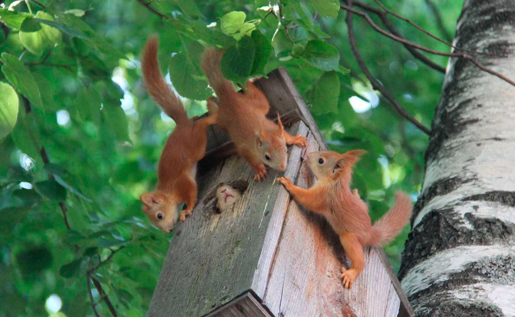Забавных зверьков можно встретить не только в лесу, но и в городских условиях. При желании можно изготовить из дерева или подручных материалов кормушку для белок и даже домик.
