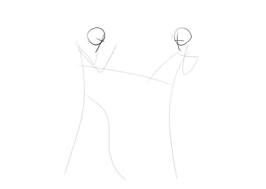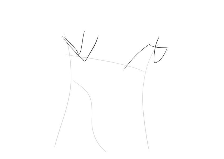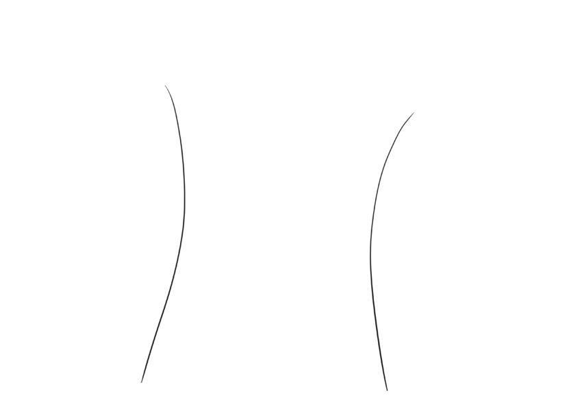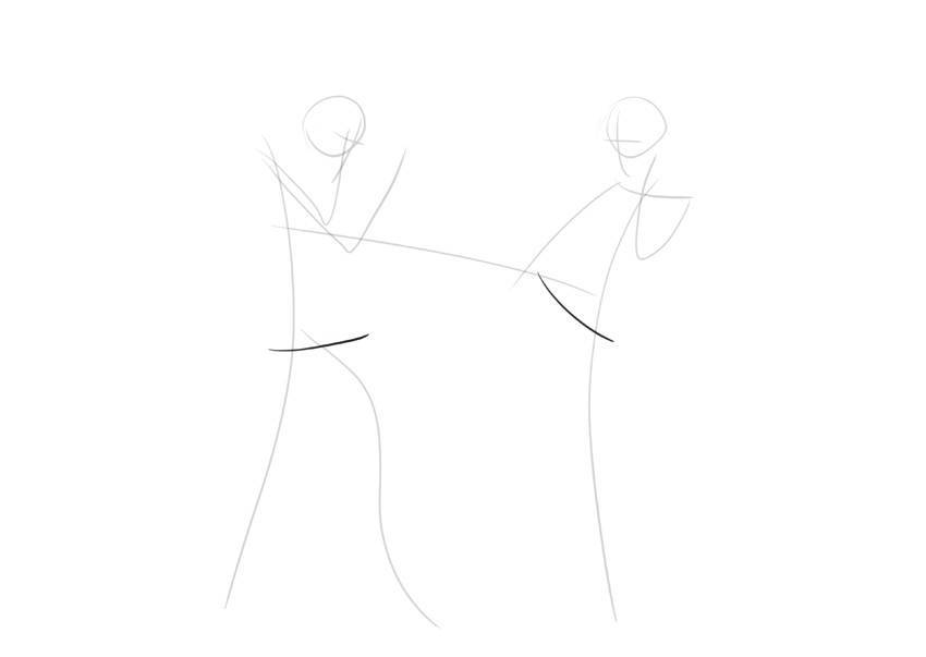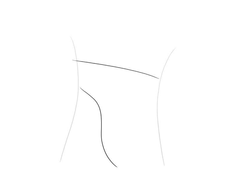 - Изобразите наклон плеч, талии и бедер как на рисунке выше. Линии талии и бедер параллельны и немного длиннее на верхних концах.