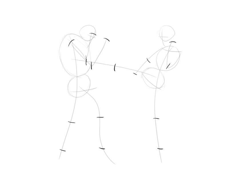 - Завершите рисунок проверкой на правильность структуры направляющих линий, основанных на углах тела.