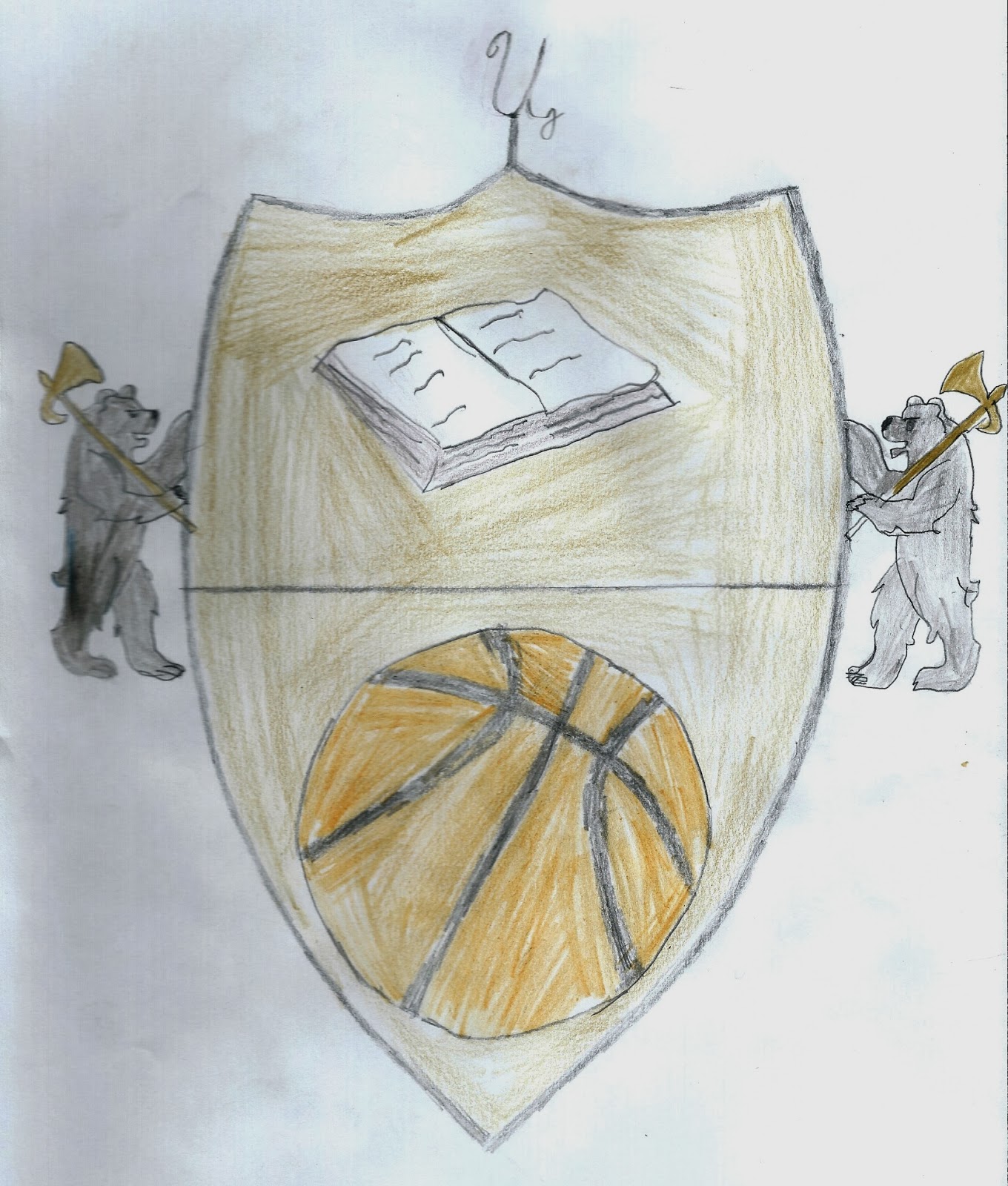 - В нижней зауженной части щита обозначить баскетбольный мяч, символизирующий любовь к этому виду спорта. Если в семье предпочитают, какой-то другой тип спортивных занятий, лучше нарисовать именно его атрибут, например, теннисную ракетку, ленту гимнастки или гантели для силовых упражнений.