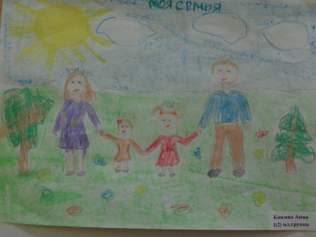 Привлекать внимание детей к важной роли семьи в их жизни. Дети очень старались, потому, что для каждого ребенка его семья является самой лучшей, дружной и веселой! Они рисуют то, что видят, то, что им близко или нравится, и, конечно же, изображают доступными для себя средствами себя и свою семью. Психологи могут определить по таким рисункам очень много важных моментов, например, кого в своей семье ребёнок считает главным, с кем у него более близкие отношения