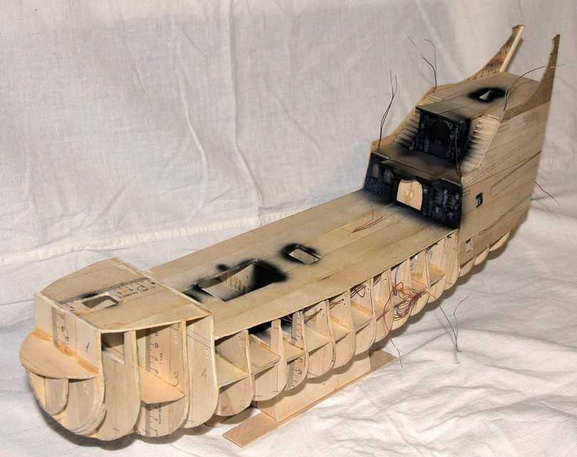 На данном этапе рекомендуется рассмотреть простые схемы для складывания корабля с несколькими трубами.