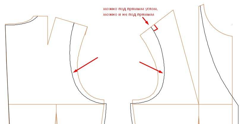Эту линию можно проводить как перпендикулярно линии плеча, так и под углом.