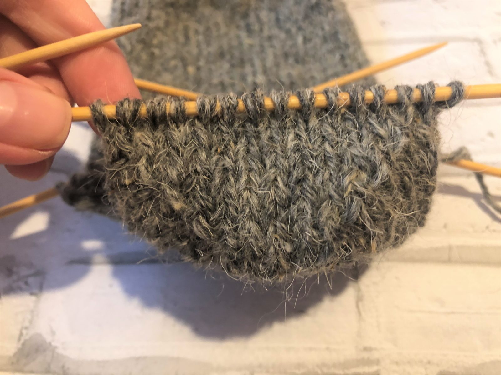 Так чередуем лицевой и изнаночный ряды высоты пятки. 24 ряда. Можно считать ряды по выпуклым галочкам, которые образовываются от снятых петель. Их должно быть 12.