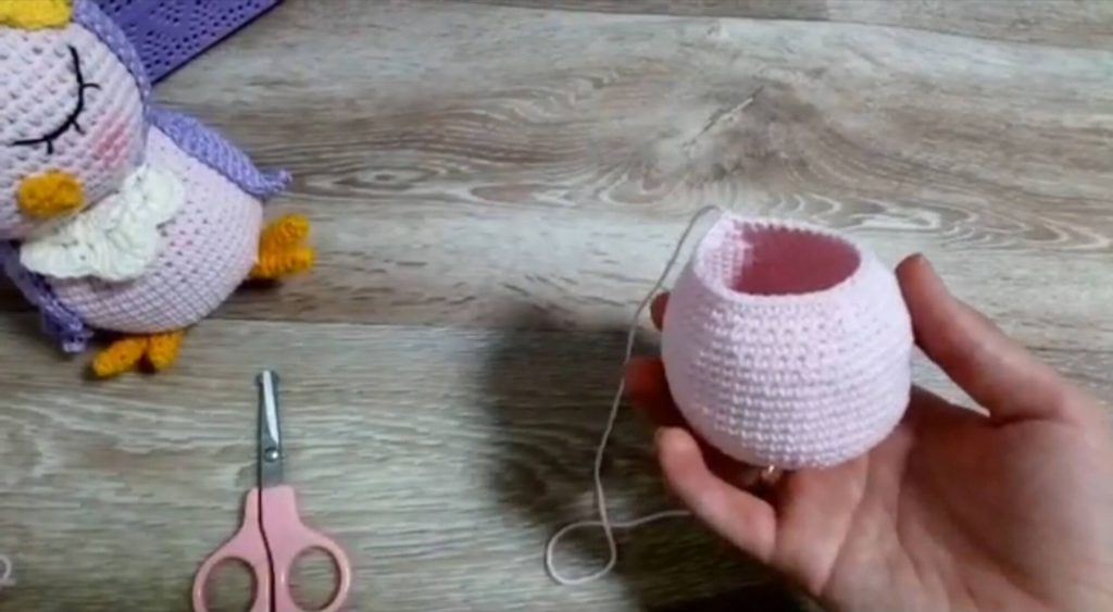 Если вы хотите получить радужную, яркую и интересную игрушку, то можно использовать для туловища разноцветную пряжу. Взяв нить основного цвета и крючок на 3 мм, сделайте замкнутое кольцо из четырех воздушных петель. Чтобы получить симметричное и аккуратное тело совы, придерживайтесь следующих рекомендаций вязания:
