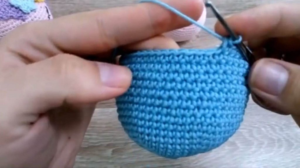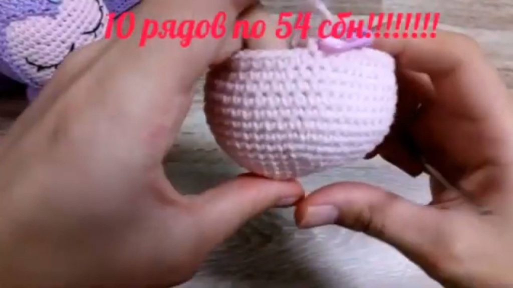 1-й: 6 СТБН в кольцо амигуруми 2-й: 6 прибав. (12) 3-й: (1 СТБН + прибав.)*6 (18) 4-й: (2 СтБН + прибав.)*6 (24) 5-й: (3 СТБН + прибав.)*6 (30) 6-й: (4 СТБН + прибав.)*6 (36) 7-й: (5 СТБН + прибав.)*6 (42) 8-й: (6 СБН + прибав.)*6 (48) 9-й: (7 СТБН + прибав.)*6 (54)