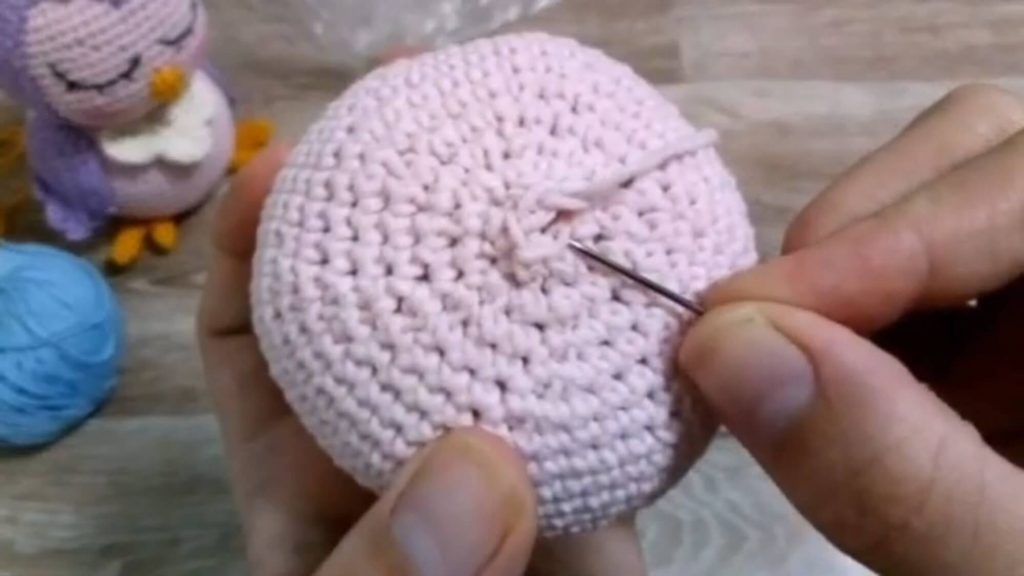 - Обрежьте рабочую нить и аккуратно сшейте края получившейся основы, чтобы убрать оставшееся отверстие.