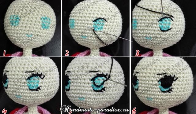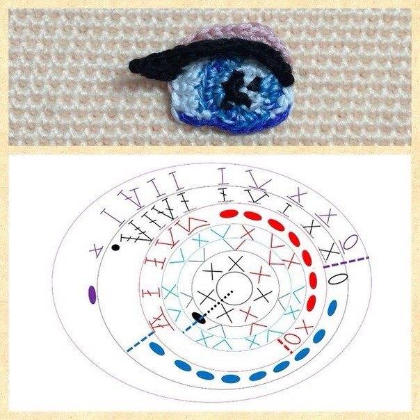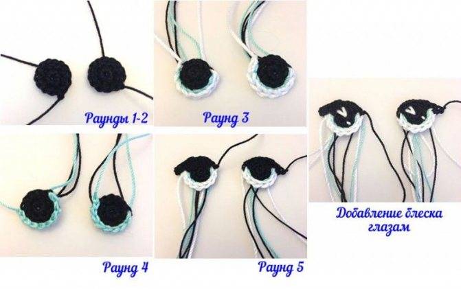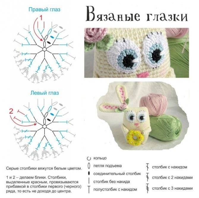 Еще несколько простых схем как связать глаза кукле крючком в картинках