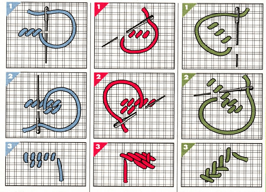 Конец нити после завершения вышивания следует спрятать под стежками. Узелки и в этом случае не допускаются.