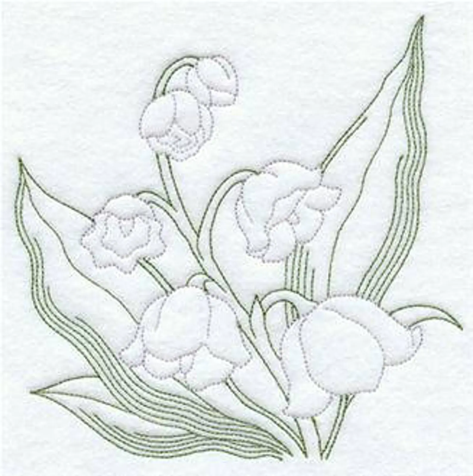- В комплекте вышивка стебля и листвы (стебель — скрученная и пришитая лента, листва — прямая строчка).