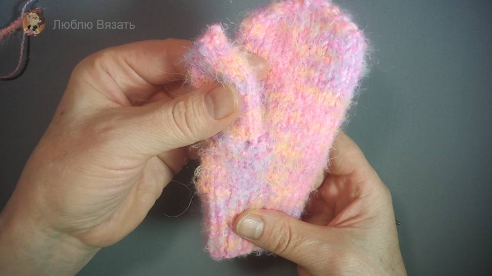 - Варежка вяжется подобным образом до конца ряда. А следующий ряд начинается с изнаночных петель.