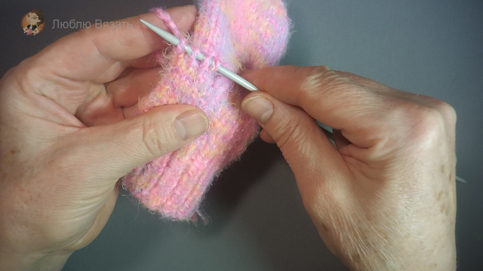Для этого ранее снятые петли набираем на спицу, по свободному краю набираем еще 7-мь петель. Я это делаю с помощью крючка и рабочей нити. Не всегда сразу красиво получается, но наберитесь терпения.