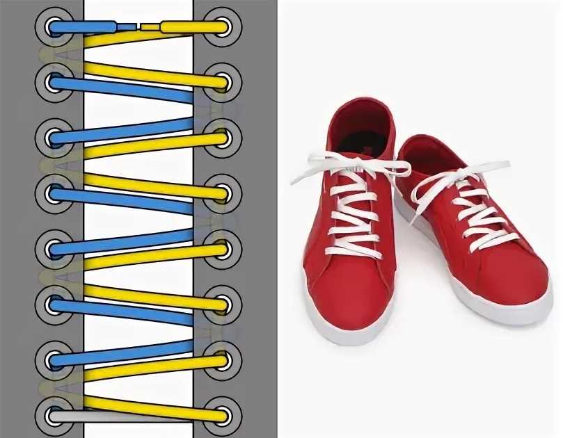 Шнуровка кед — это простой и стильный способ зафиксировать кеды на ноге. Существует много способов, как красиво зашнуровать кеды. Но лучше всего использовать классическую перекрестную шнуровку. Шнурки проходят через отверстия с противоположных сторон и перекрещиваются, образуя ряд крестов. Затем завязываются в обычный узел. Этот метод обеспечивает комфортную посадку. Кроме того, перекрестная шнуровка позволяет регулировать натяжение на разных участках обуви